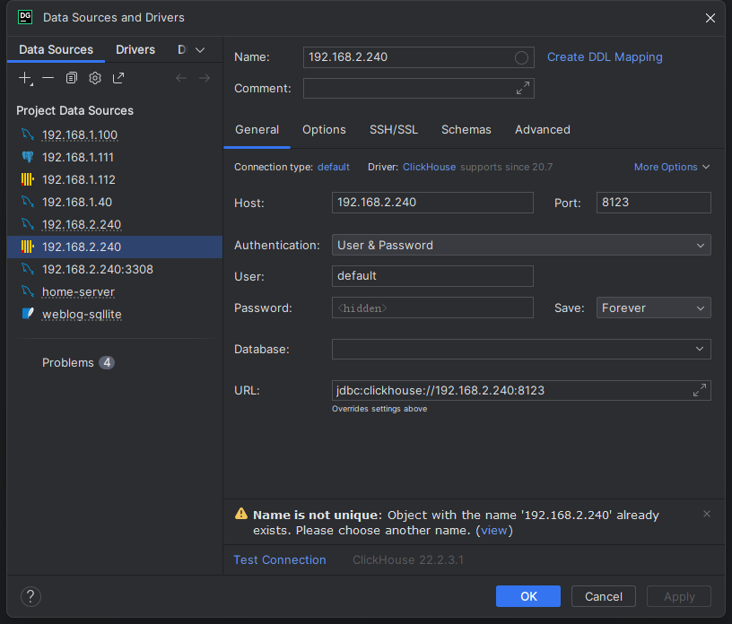 但是现在clickhouse是不允许外部访问的,这里开放外部访问
