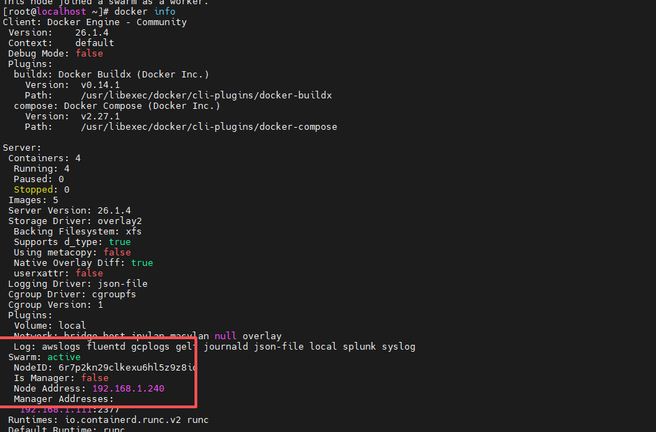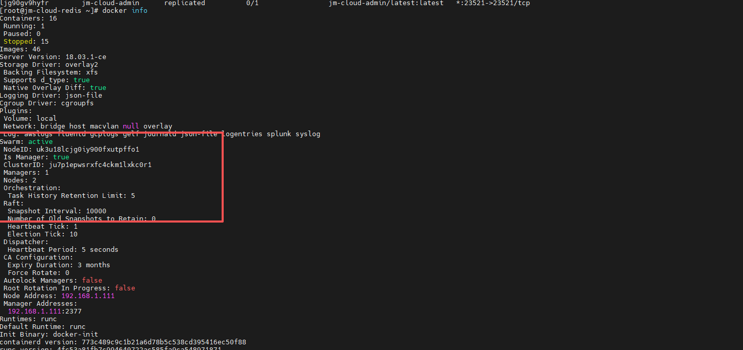 2、运行 docker info 来查看当前 swarm 集群的状态: