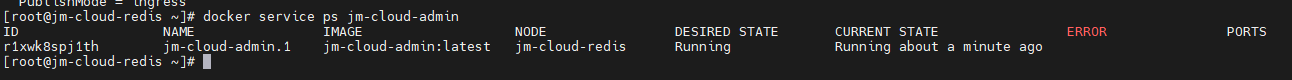 docker service rm jm-cloud-admin尽管服务不存在了,任务容器还需要几秒钟来清理,你可以在工作节点 cnkanon-2、cnkanon-3 上 docker ps 查看任务什么时候被移除。