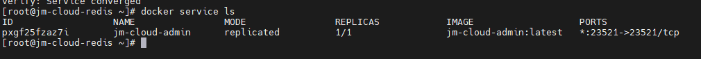 docker service create --replicas=1 --name=jm-cloud-admin --publish=23521:23521 jm-cloud-admin