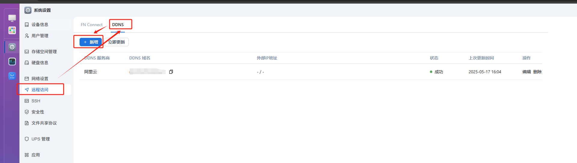 2、使用飞牛OS自带的DDNS