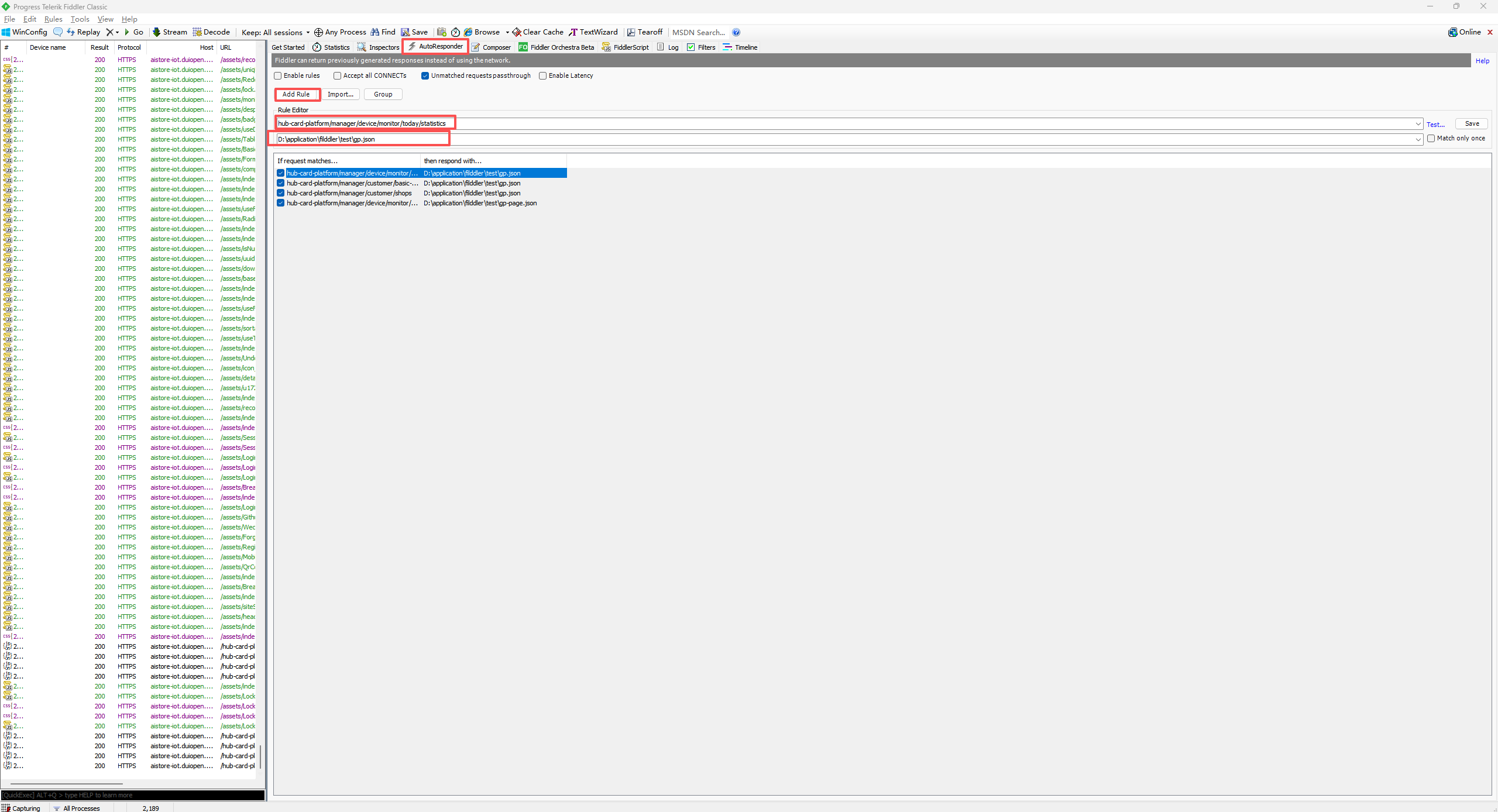 3、在第一个框,输入要匹配的url地址,这里填入:hub-card-platform/manager/device/monitor/today/statistics