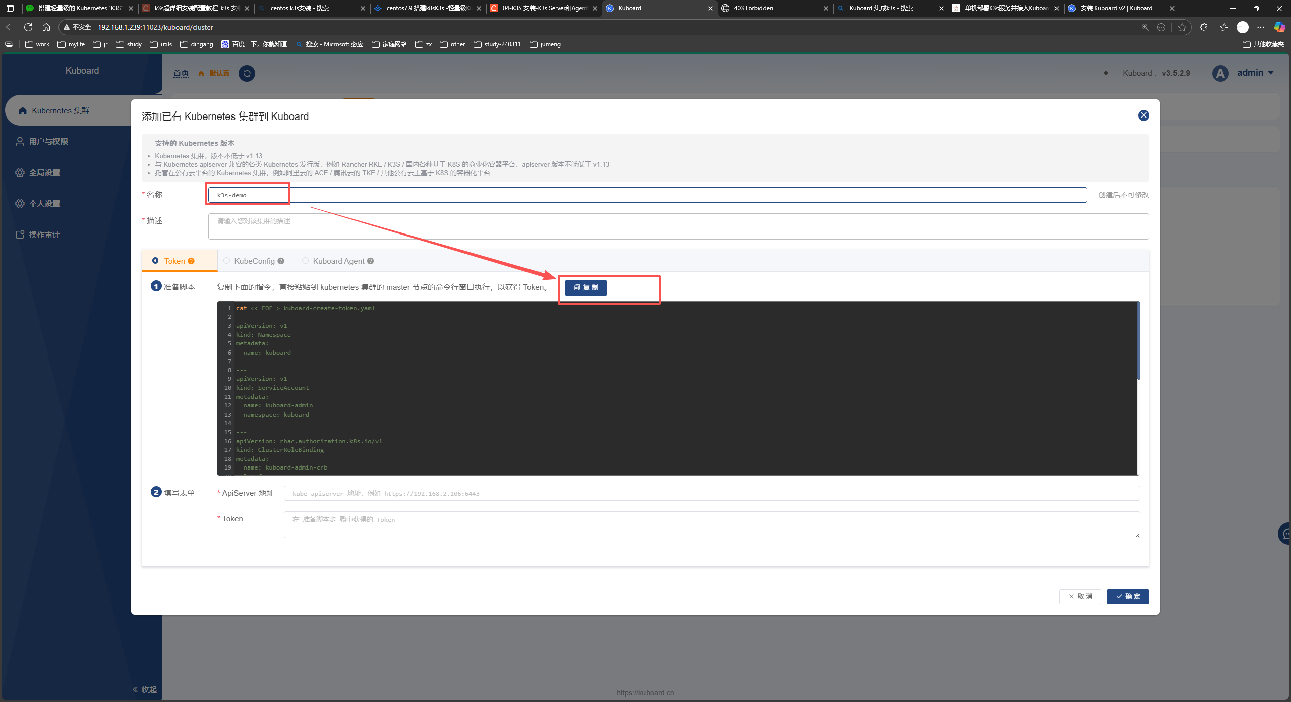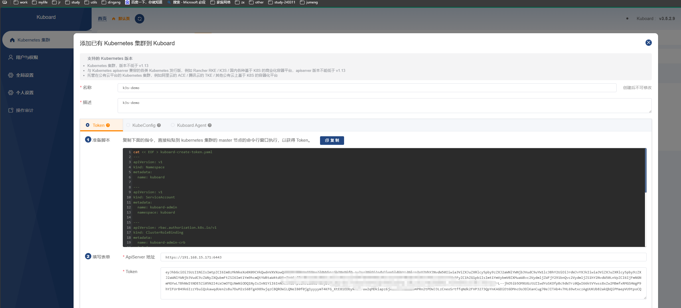 kubectl apply -f kuboard-create-token.yaml