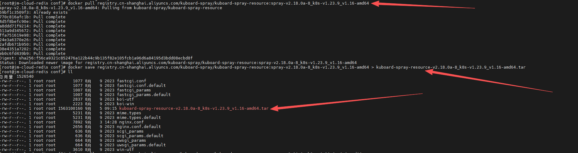 docker save registry.cn-shanghai.aliyuncs.com/kuboard-spray/kuboard-spray-resource:spray-v2.18.0a-8_k8s-v1.23.9_v1.16-amd64 > kuboard-spray-resource-v2.18.0a-8_k8s-v1.23.9_v1.16-amd64.tar该镜像已经上传到云盘