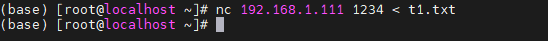 nc 192.168.1.111 1234 < t1.txtnc IP 端口 < 文件