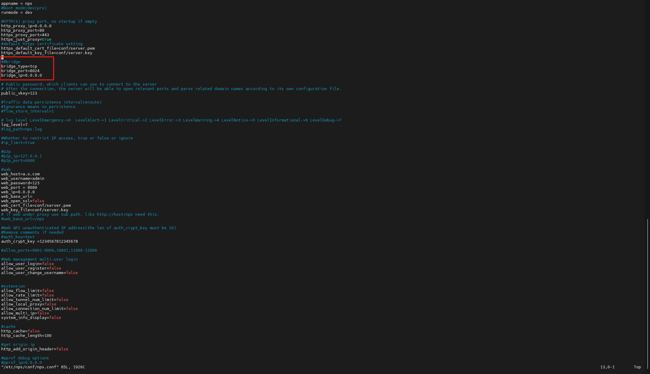 配置文件地址 /etc/nps/conf/nps.conf