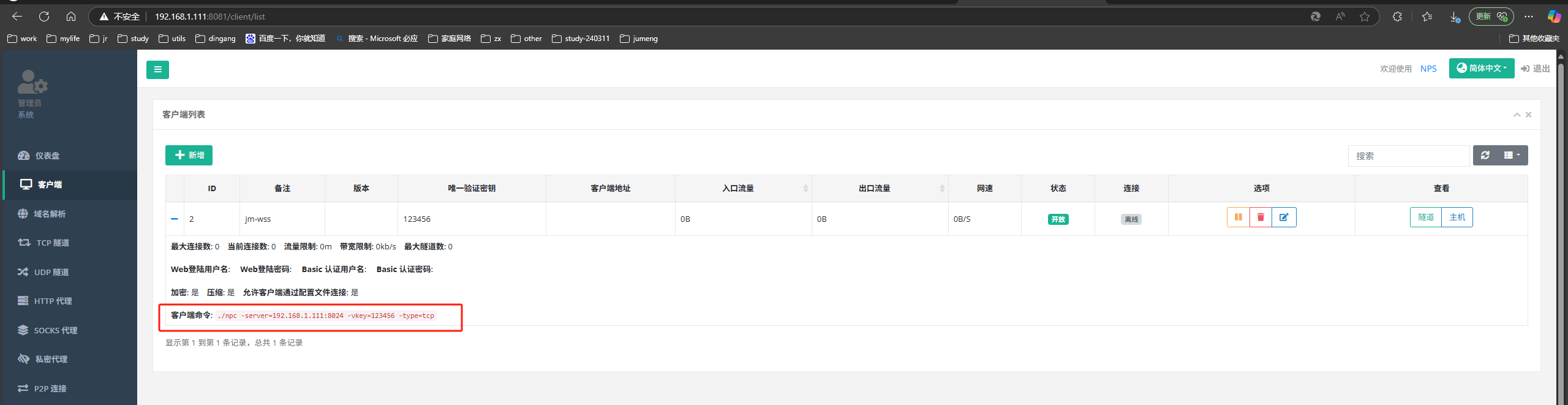 -server:nps的服务IP和端口,端口不是web端访问端口,是连接端口,可以在配置中做修改,默认8024