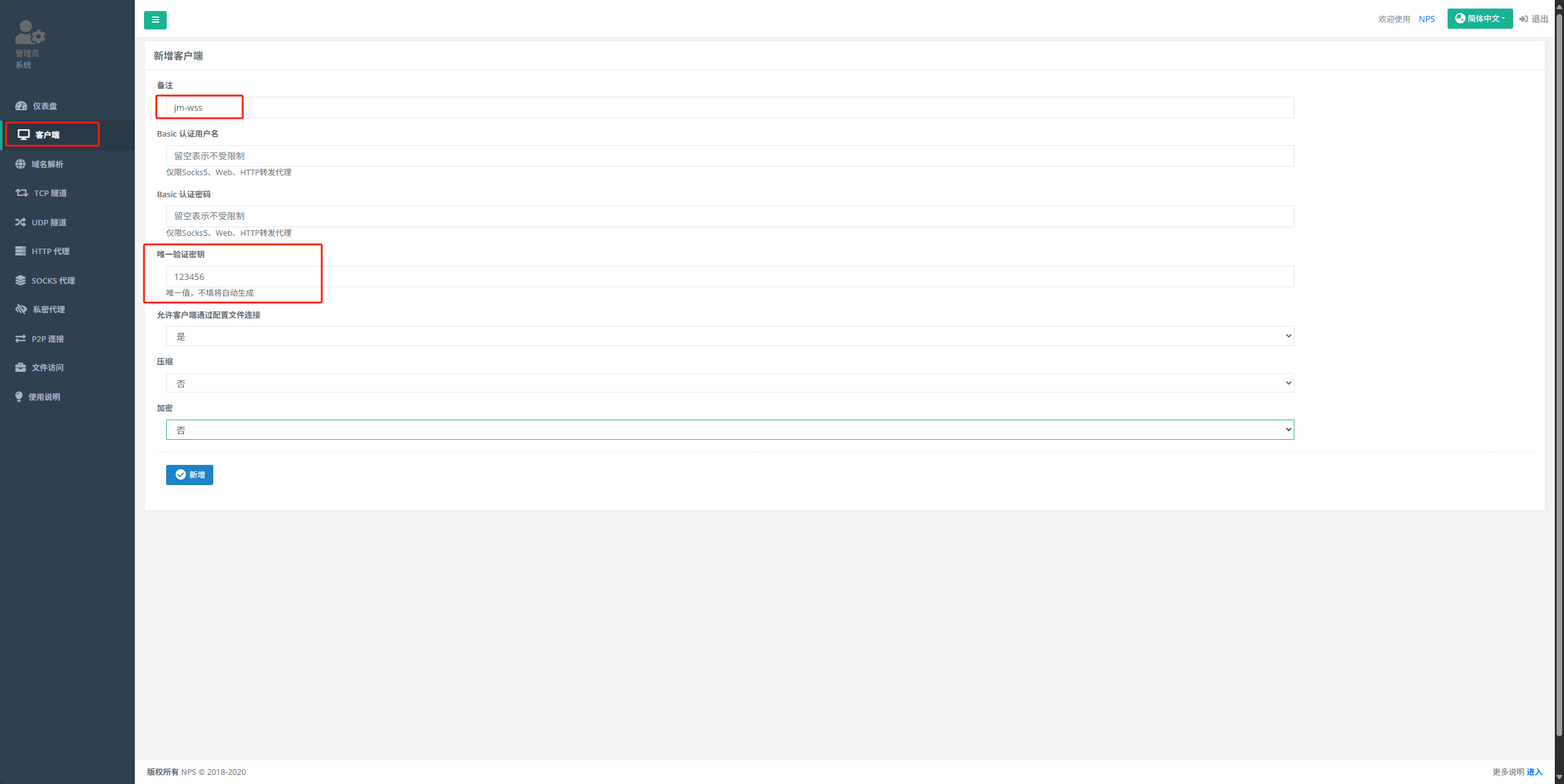 🛠 重置密码:nps stop && nps reset
