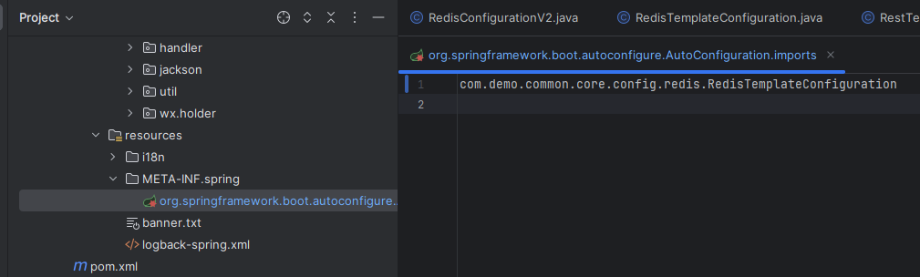 再common包中,增加redis的配置类,并通过META-INF.spring注入到spring容器中
