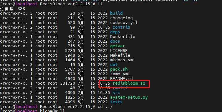 在redis安装目录下(随意,放一起方便管理),上传bloom过滤器插件,并解压