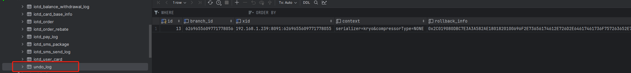 unique (xid, branch_id)