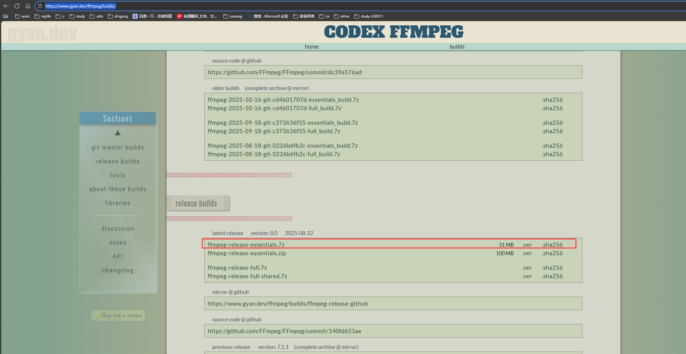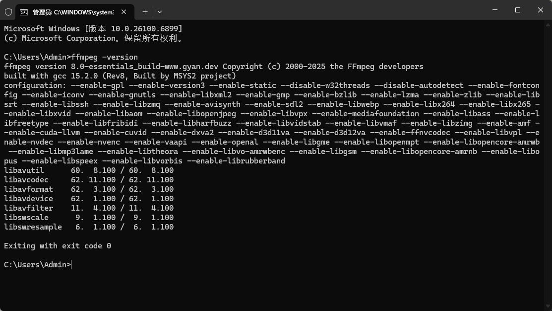 官网下载,直接解压,添加系统环境配置即可:https://www.gyan.dev/ffmpeg/builds/