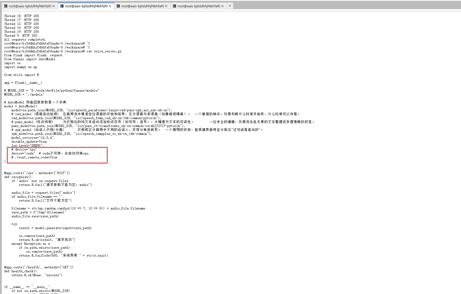 6.3、修改voice_server.py 的device="cuda"