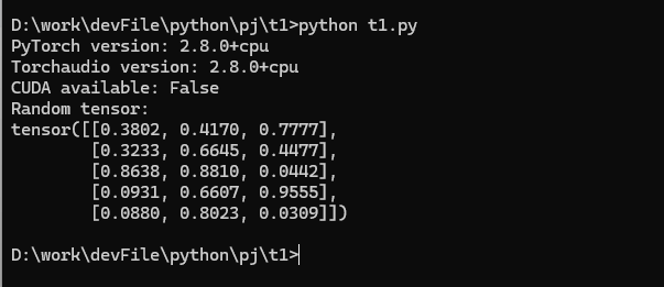 print(x)如果输出显示 PyTorch 版本 ≥1.13,torchaudio 版本正确,并且能正常创建张量,则说明安装成功