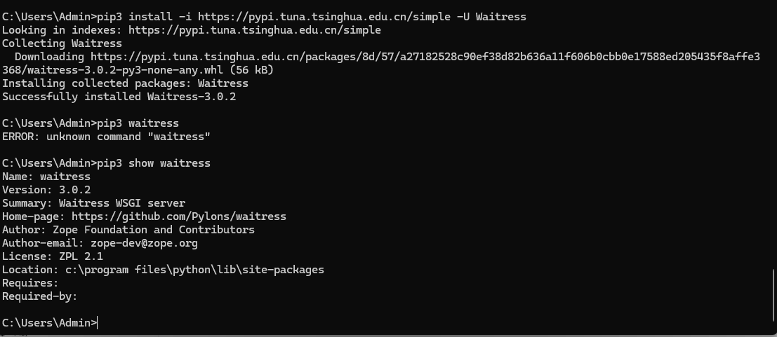 pip3 install -i https://pypi.tuna.tsinghua.edu.cn/simple -U Waitress